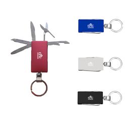 Constructed of stainless steel, this 6-in-1 multi-tool features knife, nail file, scissors, ruler and bottle opener fold into the aluminum body that has a key ring at the end to hold keys or to attach tool to a bag or belt loop. Customize with your logo or message in any color. Give the gift of practicality with our stainless steel multifunctional knife, a portable and versatile tool.