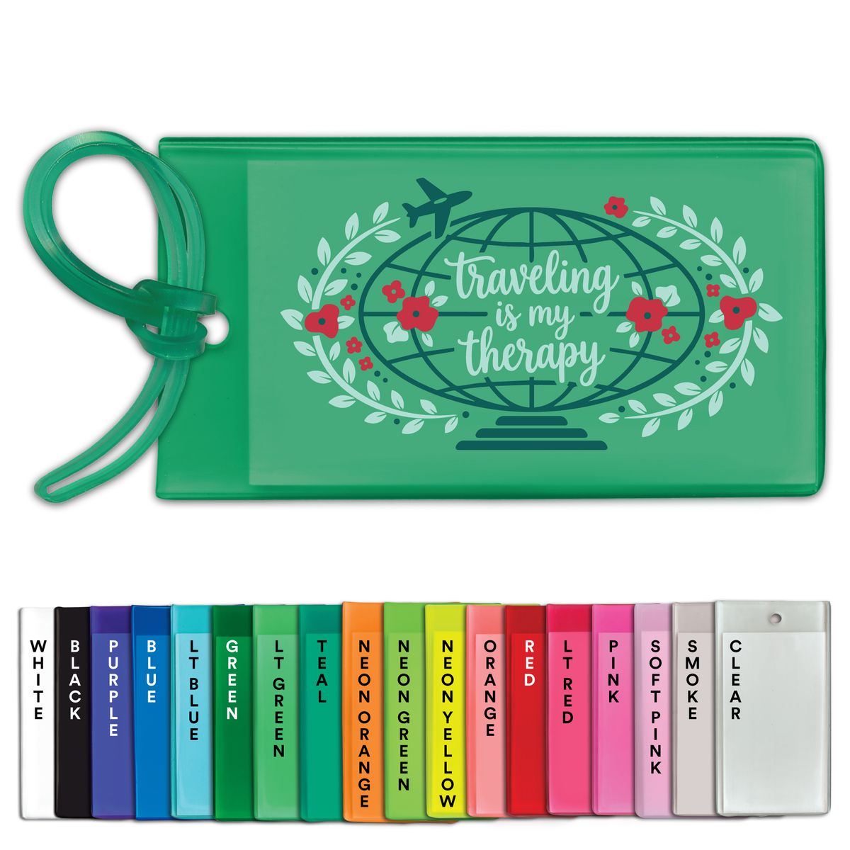 These industry original ID and Luggage tags feature Sof-Touch™ Original material, outstanding durability and guaranteed permanent imprint. Rainbow of product color options - 16 translucent and 2 opaque - allows for easy coordination of event graphics and branding logos. Flexible, durable straps are provided in matching color unless other strap color choice is specified on order.